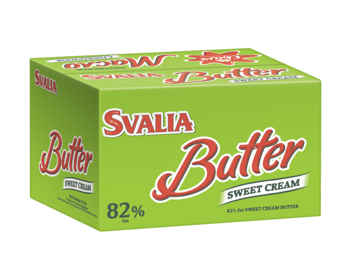 SVALYA cream butter, 82%, 25kg. The top quality butter is genuine and natural. It is made from sweet and sour cream, making it aromatic and nutritious. Our modern manufacturing technology maintains the butter’s ideal consistency, its delicate taste, and ensures it is easily spreadable.