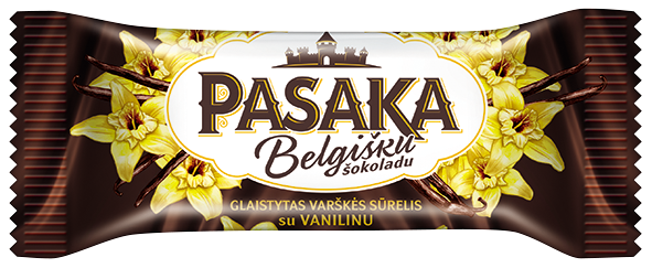 PASAKA belgišku šokoladu glaistytas sūrelis su vanilinu, 45g. Varškės sūrelis glaistytas tikro Belgiško šokolado sluoksniu.