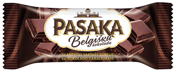 PASAKA belgišku šokoladu glaistytas sūrelis su šokoladu, 45g. Varškės sūrelis glaistytas tikro Belgiško šokolado sluoksniu.