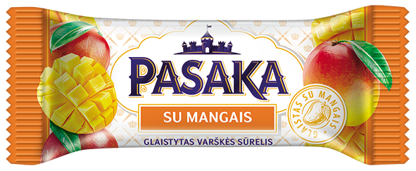PASAKA glaistytas varškės sūrelis su mangais, 45g.