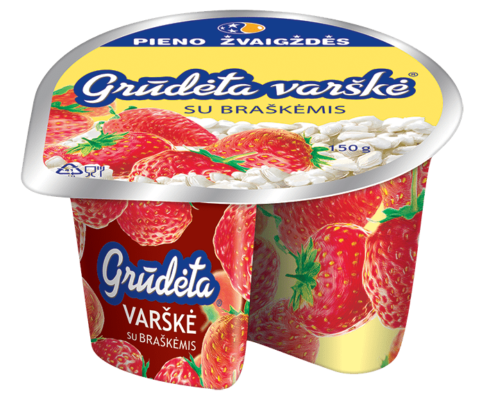 GRŪDĖTA varškė su braškėmis, 150g. Nepaprasto populiarumo, išskirtinio skonio ir malonumo ją valgyti paslaptis slypi ypatingai aukštos kokybės varškėje, šviežioje grietinėlėje ir unikalioje gamybos technologijoje. Skanaukite ją šaukštais!