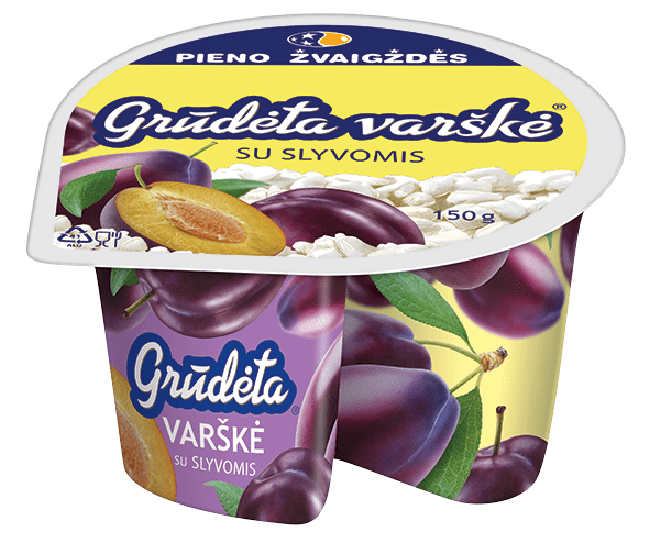 GRŪDĖTA varškė su slyvomis, 150g. Nepaprasto populiarumo, išskirtinio skonio ir malonumo ją valgyti paslaptis slypi ypatingai aukštos kokybės varškėje, šviežioje grietinėlėje ir unikalioje gamybos technologijoje. Skanaukite ją šaukštais!