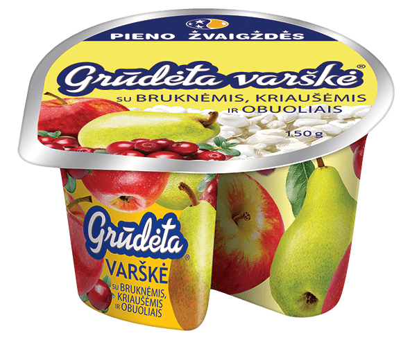 GRŪDĖTA varškė su bruknėmis, kriaušėmis ir obuoliais, 150g. Nepaprasto populiarumo, išskirtinio skonio ir malonumo ją valgyti paslaptis slypi ypatingai aukštos kokybės varškėje, šviežioje grietinėlėje ir unikalioje gamybos technologijoje. Skanaukite ją šaukštais!