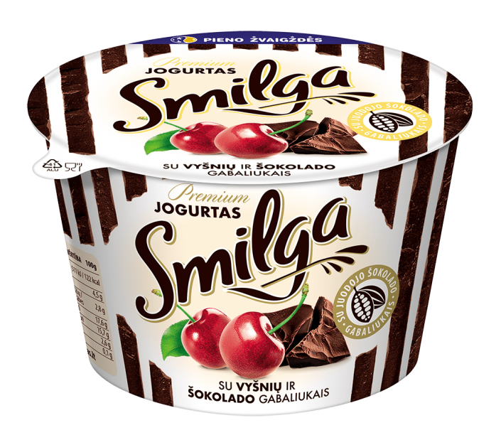 SMILGA jogurtas su vyšniomis ir šokolado gabaliukais, 200g