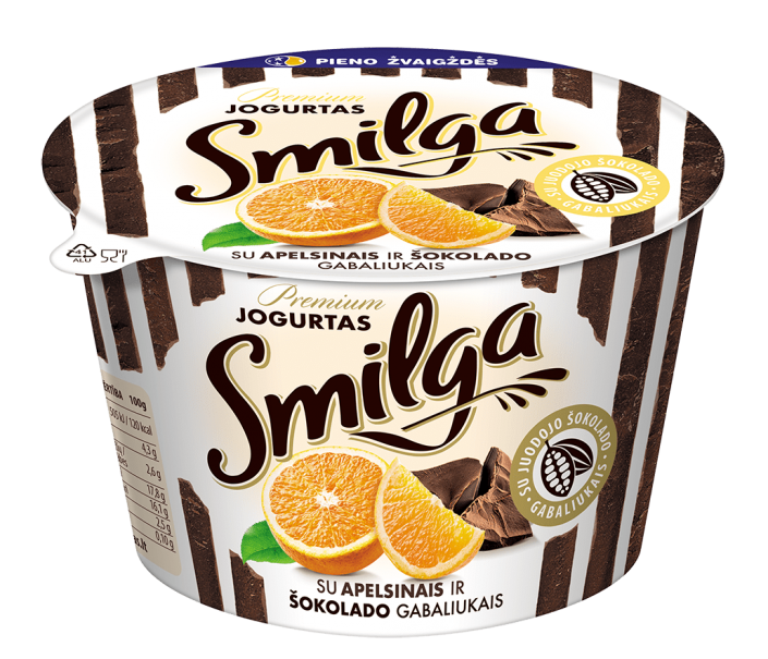 Smilga jogurtas su apelsinais ir šokolado gabaliukais, 200g