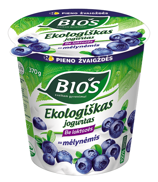 BIOS EKO jogurtas be laktozės, su mėlynėmis, 370g. Ekologiškas jogurtas “BIOS” vienas pirmųjų įgavo teisę oficialiai vadintis ekologišku. Jis ypatingas tuo, kad jo sudėtyje esantis pienas, ir uogienės yra sertifikuoti ekologiški produktai.