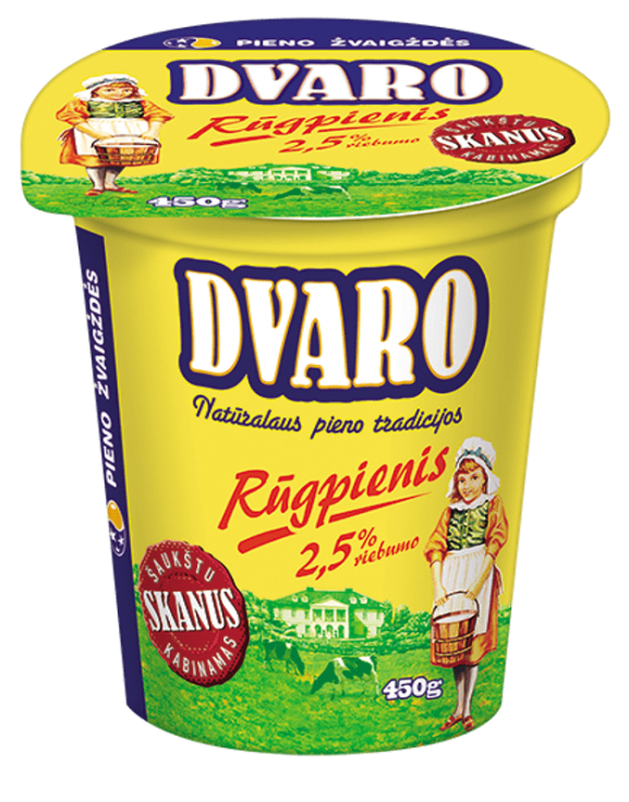 DVARO rūgpienis 2.5 % riebumo, 450g. Šaukštu kabinamas skanusis rūgpienis. Puikiausiai tinka su koše, duona, bandelėmis, virtomis ar keptomis bulvėmis.