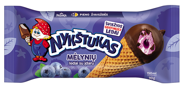 NYKŠTUKAS grietininiai ledai su mėlynių įdaru, 150ml. Visus metus švęskime vasarą ir prisiminkime vaikystę gardžiuodamiesi gaiviais, puriais, pasakiškais „Nykštuko“ ledais! Juos žino visi, nes tai ledai su kuriais mes užaugom!