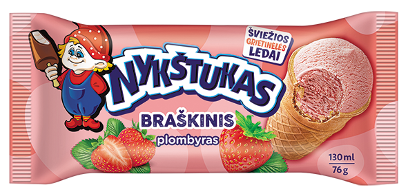 NYKŠTUKAS plombyras braškinis, 130ml. Visus metus švęskime ir prisiminkime vaikystę gardžiuodamiesi gaiviais, puriais, pasakiškais „Nykštuko“ ledais! Juos žino visi, nes tai ledai su kuriais mes užaugom!