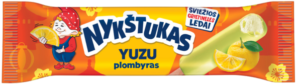 NYKŠTUKAS citrinų skonio yuzu plombyras, 80ml. Visus metus švęskime vasarą ir prisiminkime vaikystę gardžiuodamiesi gaiviais, puriais, pasakiškais „Nykštuko“ ledais! Juos žino visi, nes tai ledai su kuriais mes užaugom!