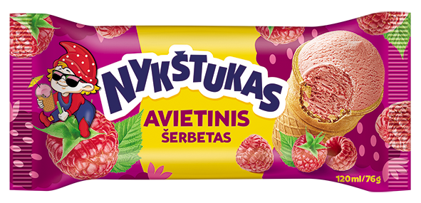 Avietinis šerbetas NYKŠTUKAS puodelyje, 120 ml. Visus metus švęskime ir prisiminkime vaikystę gardžiuodamiesi gaiviais, puriais, pasakiškais „Nykštuko“ ledais! Juos žino visi, nes tai ledai su kuriais mes užaugom!