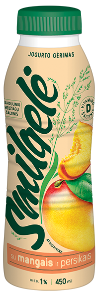 Jogurto gėrimas SMILGELĖ su mangais ir persikais, su skaidulomis ir vitaminu D, 450ml