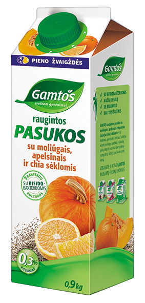 GAMTOS raugintos pasukos. Su moliūgais, apelsinais ir chia sėklomis, 900g. Pasukos susidaro iš šviežios grietinėlės mušant sviestą. Pasukų produktai gausūs lecitino. Jie vertingi, lengvai virškinami ir tinka net netoleruojantiems laktozės!