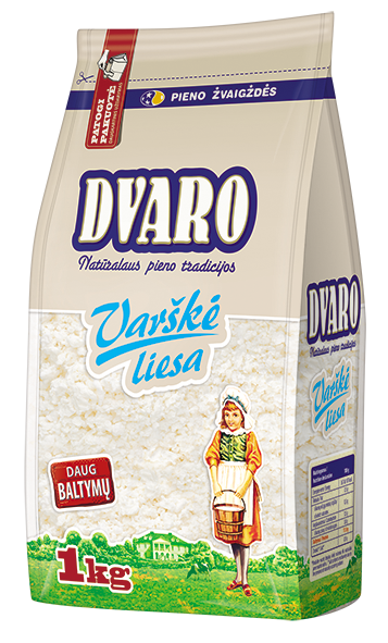 DVARO varškė liesa, 1kg. Nuo seno vertinama klasikinė varškė naudinga tiek mažiems, tiek dideliems, nes yra baltymų šaltinis. Neapsakomai gardi valgant vieną, tinka gaminant visus varškės patiekalus.