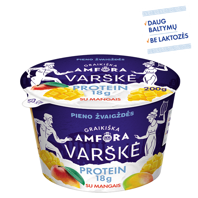 Varškė GRAIKIŠKA AMFORA PROTEIN su mangais, 200g.
